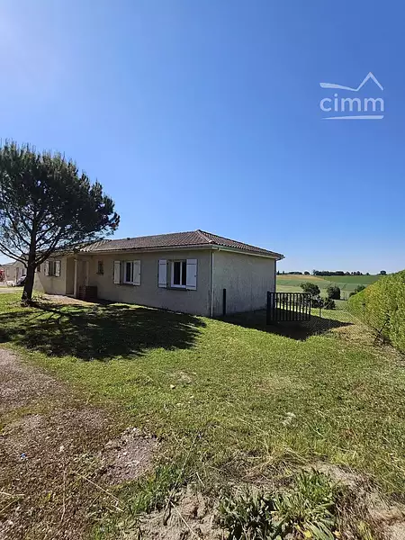 À 15mn d'AGEN environ, très agréable pavillon de plain-pied avec vue panoramique. Environnement campagne très calme sans être isolé. Transports scolaires.