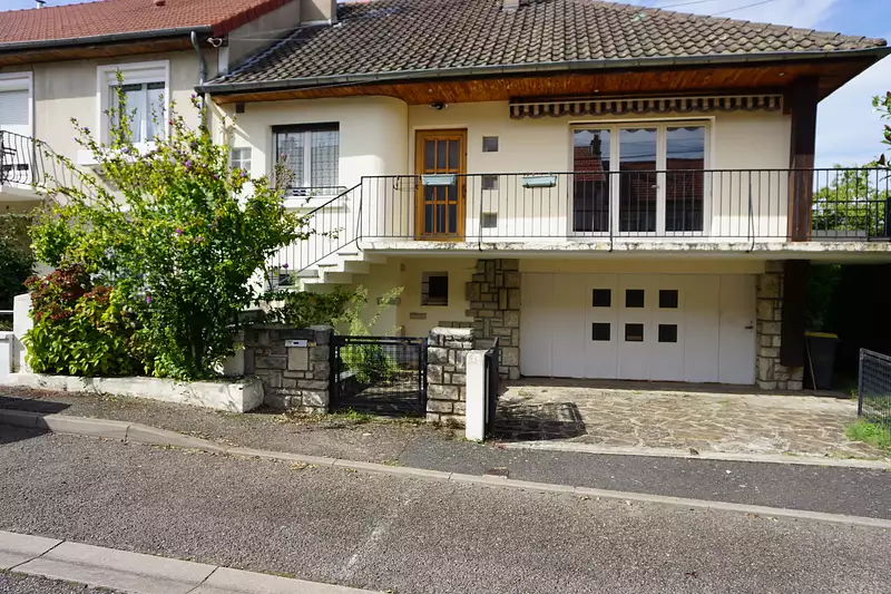 Agréable maison sur une parcelle de terrain clos et arboré située dans un quartier calme et à proximité immédiate des commodités . D'une superficie de 118 m² et d'un terrain plat de 436 m² ses caractéristiques sont les suivantes . En RDC un grand garage donnant accès sur un dégagement avec chaufferie , buanderie , rangements , chambre, salle d'eau, wc, cave, petite pièce .