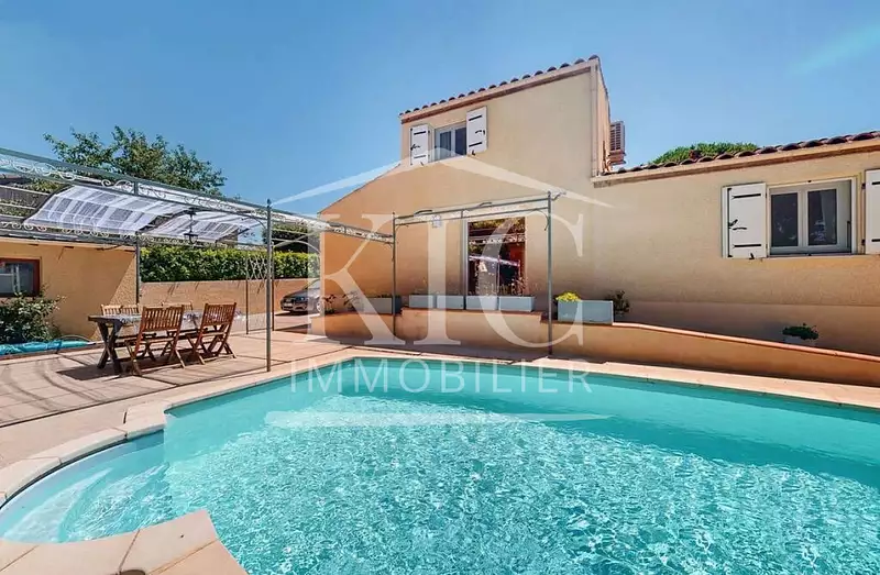 Réf 12806 CJ - PROCHE CARCASSONNE - Dans un village prisé, environnement très calme, maison d'environ 118 m2 habitables sur un terrain clos et arboré de 800 m2 avec piscine 8*4 et garage d'environ 20 m2. Comprenant une grande et belle pièce de vie de 69 m2 environ, 4 chambres avec placards, une salle de bain, WC. Double vitrage, climatisation réversible.