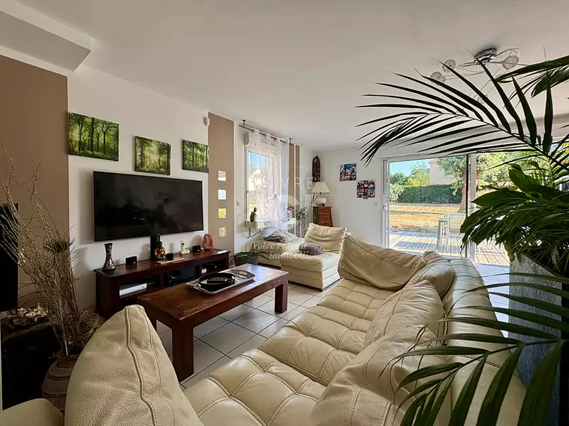Dans un environnement calme et recherché, découvrez cette charmante maison bbc ossature bois construite en 2010, d'environ 119m² habitables sur un terrain de 654m², exposée plein sud. Lumineuse et parfaitement entretenue, elle allie confort moderne et cadre de vie chaleureux. Au rez-de-chaussée, vous trouverez : - Une pièce de vie spacieuse et baignée de lumière avec salon et salle à manger - Une cuisine aménagée et entièrement équipée - Un cellier fonctionnel et un dégagement avec placard - Des toilettes séparées - Une chambre pouvant faire office de bureau - Une suite parentale avec dressing et salle d'eau privative A l'étage : - Deux chambres avec placards intégrés - Une salle de bains avec WC Un garage attenant vient compléter les prestations de cette maison, idéale pour une vie de famille paisible. Les plus : - Maison en excellent état, aucun travaux à prévoir - Construction bois de qualité, ambiance chaleureuse et économe en énergie - Exposition sud idéale pour profiter de la lumière naturelle toute la journée - Quartier résidentiel calme et agréable, proche des commodités Bel Air - Couëron : Un cadre de vie serein à seulement quelques minutes des commerces, écoles et axes principaux. (3.24 % honoraires TTC à la charge de l'acquéreur.)