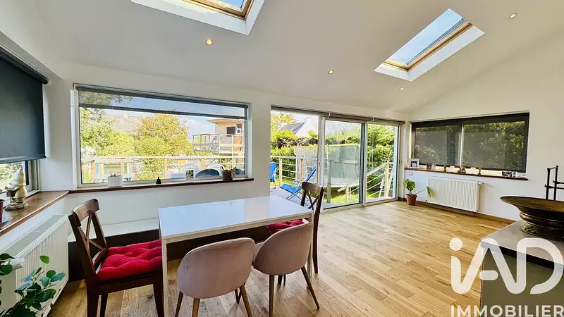 Le tout sur un terrain clos et arboré de 838 m², avec garage, deux places de stationnement, chauffage au gaz, et un séjour de 29 m².