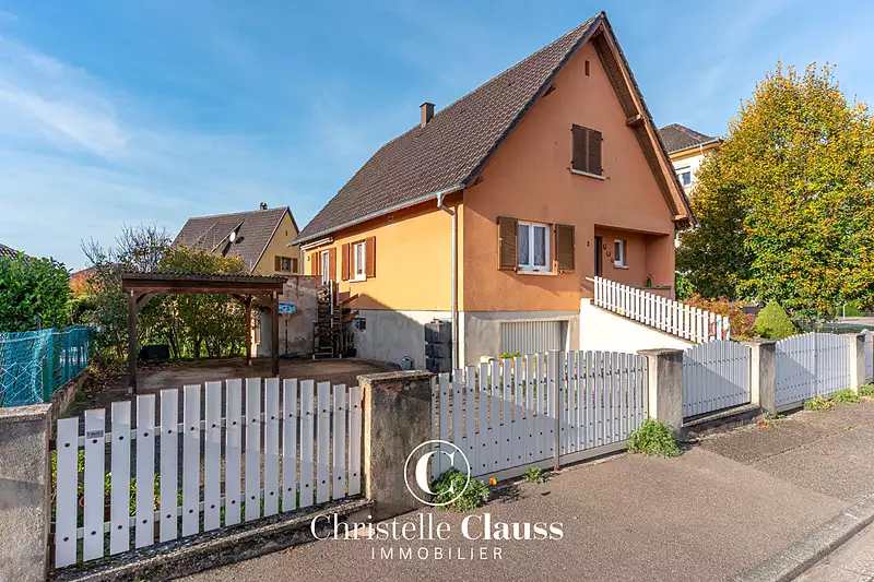 En exclusivité dans votre agence Christelle Clauss Immobilier d'Erstein Nous vous proposons à la vente cette maison familiale de 118 m² située dans un quartier résidentiel proche des écoles et profitant d'un bel espace extérieur de 5 ares 57. La maison offre un potentiel de plain pied disposant d'une chambre, salle d'eau et WC séparé au RDC. La cuisine semi-ouverte, communique avec le salon/séjour de 29m² et profite d'une exposition plein Sud. A l'étage, nous retrouvons deux chambres spacieuses, (15 et 18m²) un toilette séparé et un grand dégagement avec rangement. Vous profiterez d'un sous-sol complet comprenant, une buanderie, un atelier et un garage double. Les + : dble vitrage PVC récent, chauffage gaz de ville, Isolation des combles, N'hésitez pas à nous contacter pour organiser une visite ! (6.00 % honoraires TTC à la charge de l'acquéreur.)