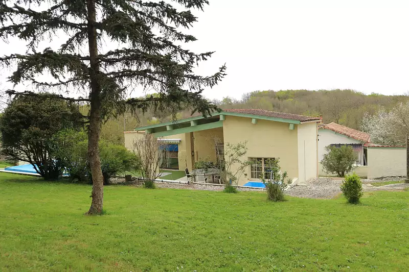 Les dimensions confortables du terrain arboré d'arbres fruitiers vous protègent du voisinage, pour profiter pleinement de la piscine hors sol de 6,50 m en armature bois.