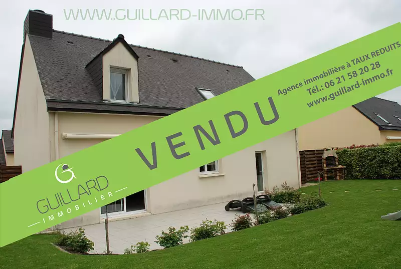 VENDUE par l'Agence GUILLARD IMMOBILIER en 1 mois ! Spacieuse maison contemporaine non mitoyenne, sans vis à vis. Idéalement située, vous apprécierez son emplacement à cinq minutes des écoles, des transports et des commerces. Elle offre une grande pièce de vie lumineuse de près de 42m2 donnant sur une terrasse et un terrain clos et paysagé sans vis à vis, une cuisine ouverte, wc. A l'étage, une mezzanine, trois chambres, un bureau, une salle de bains, wc. Elle est dotée d'un garage, d'une buanderie et d'un abri de jardin. Le tout sur un terrain de 575 m2 ! Honoraires de 3,48 % TTC à la charge de l'acquéreur . GUILLARD Immobilier - Agent indépendant à taux réduits Contactez moi !