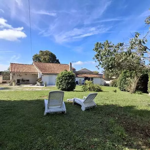 Maison charentaise rénovée d'une surface habitable de 118 m², comprenant au rez-de-chaussée : entrée/couloir avec poêle à bois – cuisine équipée de 18.9 m² donnant accès à une terrasse couverte côté sud– salon/séjour de 31 m² avec insert/cheminée et mezzanine – salle de bains avec sèche-serviettes – WC - dégagement avec 3 marches – chambre de 11 m² avec porte fenêtre côté sud- cellier/buanderie – chaufferie donnant accès à un préau (stockage bois)