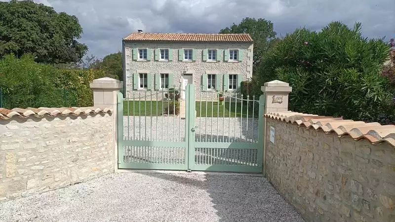 A 5min des plages. Maison récente de style charentais comprenant entrée, séjour-salle à manger avec cheminée insert et accès terrasse avec store banne, cuisine équipée, cellier, wc. A l'étage, trois chambres, salle d'eau et wc. Terrain paysagé de 600m² env. Piscine au sel de 9mx4m avec vue campagne. Excellent état d'entretien.