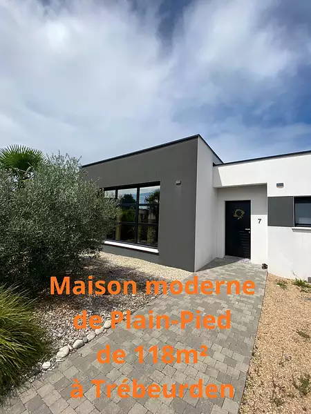 Action Immobilière vous propose en exclusivité, sur la commune de Trébeurden (22560), cette spacieuse et lumineuse maison moderne de plain-pied d’environ 118 m2 habitables. Situé dans un écoquartier calme, ce bien offre un cadre de vie idéal, alliant tranquillité, proximité immédiate des commodités (100 mètres école maternelle, primaire / 300 mètres supermarché, pharmacie) et vous serez également à 1 kilomètre à pied de la plage de Tresmeur. Bénéficier des avantages de cet écoquartier, avec des charges annuelles inférieures à 1 500 € (comprenant taxe foncière, consommation énergétique, eau et entretien de chaudière). La maison de plain-pied se compose d’une entrée desservant deux espaces distincts : D’un côté, une vaste et lumineuse pièce de vie de 45 m2 avec cuisine américaine ouverte, aménagée et équipée (tous appareils avec marque BOSCH), une spacieuse suite parentale (chambre et salle d’eau avec WC), une buanderie et une pièce polyvalente pouvant servir de bureau, chambre d’appoint ou salle de jeux/yoga. De l’autre côté de l’entrée, deux grandes chambres, une salle de bain, un WC séparé ainsi qu’un accès direct au garage attenant de 21.5m2. À l’extérieur, le terrain arboré, jardin paysagé et clos avec portail offre une superficie de 430 m2. Informations techniques : Construction récente (2022) Chauffage au sol par pompe à chaleur Fenêtres en double vitrage alu Volets électriques avec gestion à distance par smartphone sans aucun abonnement, incluant le chauffage (même de l'étranger). Assainissement collectif Panneaux photovoltaïques Collecte des eaux pluviales Taxe foncière : ~300€ Consommation électrique minimale Classe énergétique DPE/GES : A Ne manquez pas cette opportunité unique de devenir propriétaire d’une maison moderne, lumineuse, construite avec des matériaux de qualité, sur-mesure et prête à vous accueillir, sans aucun travaux. Possibilité d’acquérir la maison entièrement meublée. Prix de vente frais d’agence inclus : 510 000€ (honoraires charge vendeur).Référence annonce : M231 Pour plus d’informations, contactez Matthias THOMAS au 07.52.02.25.32 ou à . Les informations sur les risques auxquels ce bien est exposé sont disponibles sur le site Géorisques : www.georisques.gouv.fr Action Immobilière, Adresse : 11 rue de Buzulzo, quartier de la Gare, 22 300 Lannion, Tel : 02.96.23.10.62. Tous nos biens sont sur notre site internet action immobilière. Depuis 30 ans sur la Bretagne, une agence familiale à l’accueil chaleureux et des négociateurs sérieux et compétents pour vous épauler dans votre recherche et vous accompagner tout au long du processus d’achat (visites, conseils, négociation, signature et suivi du compromis avec l’étude notariée).