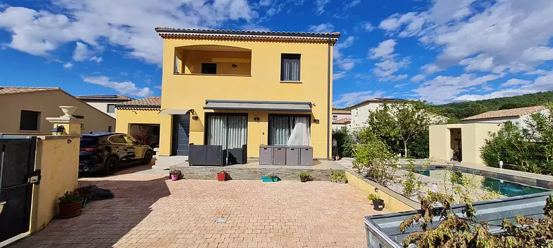 Le Pôle habitat et immobilier de Saint Paul Trois Châteaux, vous propose, cette villa contemporaine, individuelle sur deux niveaux de 2016, d'environ 119 m² habitables sur un terrain clos et arboré de 451 m², dans un quartier prisé de BOLLENE. Elle se compose d'une pièce de vie avec cuisine aménagée et équipée , d'une chambre , d'une salle d'eau et d' un WC en rez de chaussée,. Au 1er étage , nous avons : une salle d'eau avec WC, un bureau, deux chambres, dont une avec solarium. Un garage, une terrasse, avec store, une piscine de 8.3 x 3.5 et 1m 60 de profondeur. Prestations de qualités : menuiseries aluminium et PVC double vitrage, volets roulants électriques centralisés , chauffe eau thermodynamique, chauffage au sol partiel couplé avec le poêle à granules, portail et porte du garage électrique. Vous n'avez plus qu'a poser vos valises !!! A visiter sans tarder ! Les informations sur les risques auxquels ce bien est exposé sont disponibles sur le site Géorisques : https://www.georisques.gouv.fr