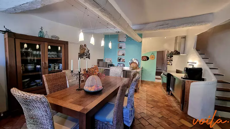 Réf " Fontaine" - Votre agence immobilière Voilà, vous propose cette maison située dans un village pittoresque avec toutes les commodités à seulement quelques minutes de Draguignan et à proximité des Gorges du Verdon et du lac de Sainte-Croix, Datant de 1750 elle allie charme, authenticité et beaux volumes sur environ 119 m². Elle se compose comme suit : - Rez-de-chaussée : cuisine avec cellier et buanderie, ouverte sur la salle à manger - 1e étage : deux belles chambres avec rangements et salle d'eau avec WC. - 2e étage : superbe salon lumineux avec poêle à bois, plafond cathédrale et mezzanine actuellement aménagée en troisième chambre. Le plafond cathédrale et la mezzanine en surplomb donnent à l'ensemble une ambiance chaleureuse et atypique, tout en offrant un véritable sentiment d'espace. Nichée sur une jolie place animée, à deux pas des commerces et des cafés, cette maison séduira les amoureux de villages provençaux, à la recherche d'un bien de caractère pour y vivre à l'année ou profiter des vacances sous le soleil du Var. Les + : - Façade et toiture refaites - Exposition Ouest - Charme, authenticité et tranquillité au coeur de la Provence - Possibilité d'une seconde salle d'eau ou dressing - Grenier Les informations sur les risques auxquels ce bien est exposé sont disponibles sur le site Géorisques : www.georisques.gouv.fr Le prix indiqué comprend les honoraires de négociation, ces honoraires sont à la charge exclusive du vendeur. Camille Maurette, Directrice, immatriculée au RSAC de Carcassonne sous le numéro 90464305300021 - carte professionnelle n° CPI11012021000000008