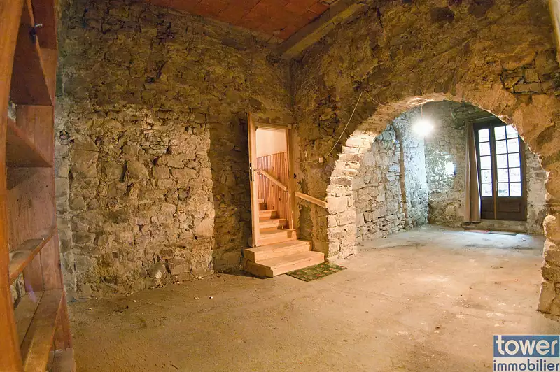 Au RDC, 3 espaces principaux et communicants vous sont proposés. Ce premier niveau peut être envisagé en tant qu'espace autonome et de charme, avec ses murs et voutes en pierre authentique ainsi que ses plafonds cathédrale de 3,75 m de hauteur ! Nous pouvons imaginer ici un grand salon-cuisine (+ de 40 m2) + 1 chambre parentale, le tout en liaison avec un accès détente extérieur. Présence d’une cuisinette et d’un WC.