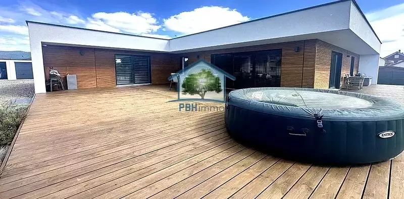 Découvrez cette superbe maison d’architecte de plain-pied, alliant design contemporain, matériaux nobles et prestations haut de gamme. Construite en 2020, d’une surface habitable de 119 m², sur un terrain clos et paysager de 1 173 m².