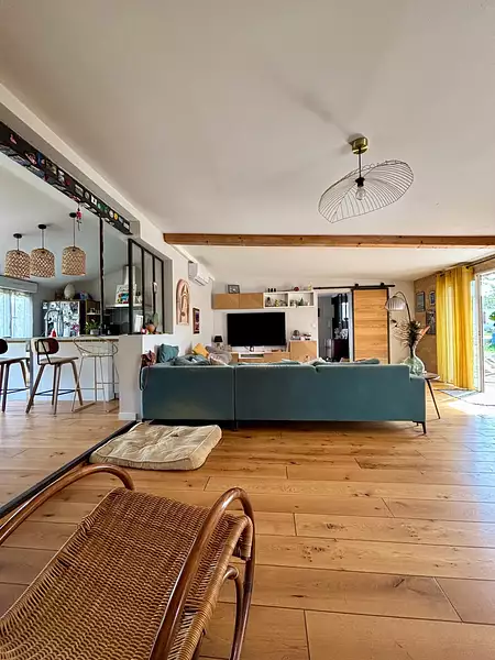Dès l’entrée, on est séduit par le bel espace de vie baigné de lumière, où la cuisine ouverte s’intègre parfaitement à un séjour convivial et chaleureux. Trois chambres viennent compléter l’ensemble, dont une avec une mezzanine pleine de caractère.