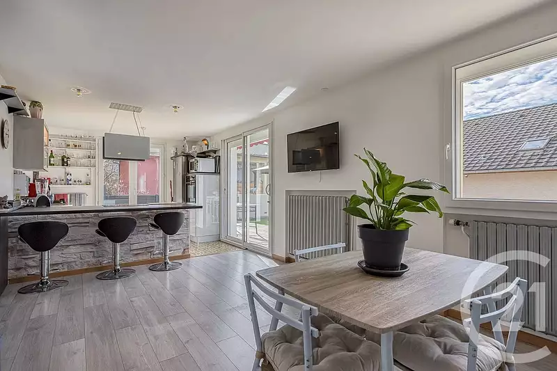 RUMILLY RESIDENTIEL, découvrez cette charmante maison de 120 m², idéale pour une vie de famille paisible. Nichée dans un quartier calme, cette propriété vous offre deux chambres et des pièces lumineuses, prêtes à accueillir vos moments de convivialité. Profitez d'une terrasse ensoleillée pour repas en plein air avec accès direct depuis la pièce de vie et. L'intérieur est en excellent état, ne nécessitant que peu de travaux, avec une isolation efficace grâce à ses murs et son double vitrage récent. Le chauffage et l'eau chaude sont individuels, fournis par une pompe à chaleur Air/Eau, garantissant votre confort tout au long de l'année et d'un garage pratique pour stationner votre véhicule, en plus des places de stationnement dans la propriété. Ce Bien offre la possibilité également d'aménager les combles ainsi que d'autres projets comme une profession libérale dans le sous-sol. Cette maison est idéalement située à proximité de toutes les commodités. Les écoles, telles que l'École Jeanne d'Arc, sont facilement accessibles, tout comme les commerces tels que Biocoop et Hyper U. Les amateurs de nature apprécieront la proximité des parcs et des forêts environnantes. Pour vos déplacements, la gare de Rumilly est à seulement 2 minutes en voiture et plusieurs lignes de bus, dont la ligne 1, se trouvent à quelques pas. Ne manquez pas cette opportunité unique de vivre dans un cadre agréable et pratique ! Montant estimé des dépenses annuelles d'énergie pour un usage standard entre 1322.0 € et 1788.0 €, indexées à l'année 2021 (abonnements compris). Bien proposé par Osmany PADILLA EI, agent commercial (RSAC 007974754)