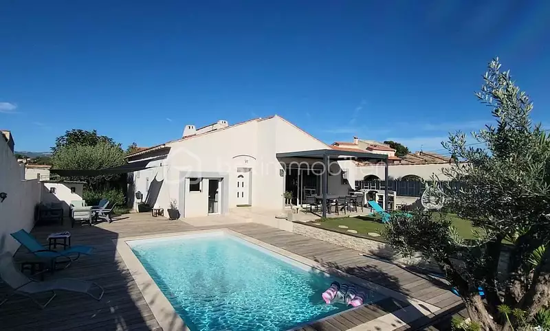 Découvrez cette charmante maison de 120 m², de plain-pied, entièrement rénovée avec goût en 2017, offrant un cadre de vie paisible avec piscine sécurisée et chauffée.