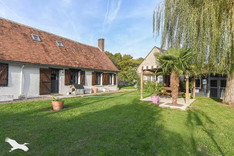 Dans un environnement calme et paisible, située dans une impasse. Longère du 19 ème siècle offrant : cuisine aménagée et équipée, grand séjour en toit cathédrale, couloir, chambre, salle d'eau, wc. A l'étage : bureau, deux chambres dont une passante. Terrasses, dépendance, garage, carport, abris bois. Terrain clos de 985 m².