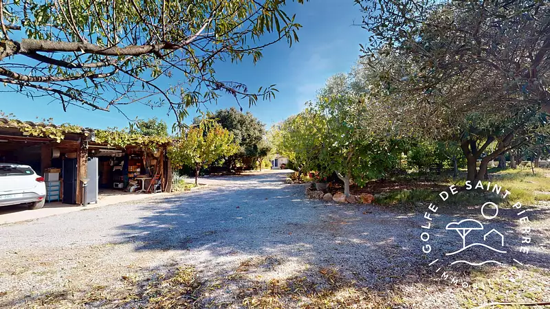 L'agence Golfe de Saint Pierre Immobilier vous présente cette maison de 120 m² habitable sur un magnifique terrain arboré de 2 900 m² avec piscine, dépendances et jardin fruitier.