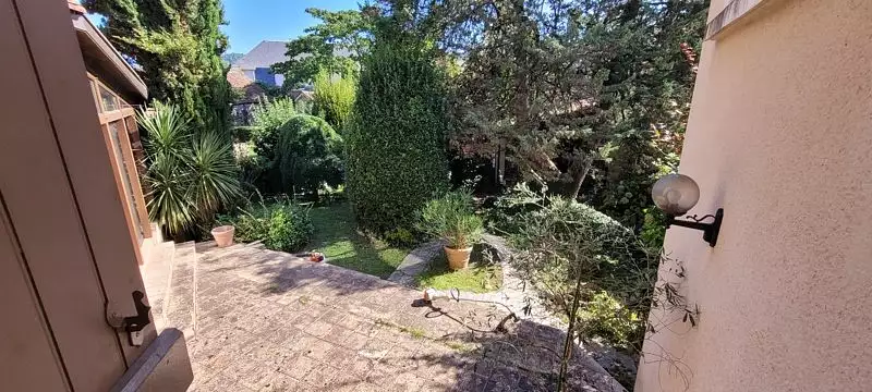 Commodités à Pied, maison de ville avec jardin et dépendance type grangette. Cette maison est composée d'une cuisine equipée et coin repas avec vue sur le jardin, 2 salons dont un avec accès terrasse, salle à manger, 2 chambres, bureau et cave/chaufferie, . Terrain d'environ 300 m2 avec accés directe sur quartier historique. Logement à consommation énergétique excessive : classe G