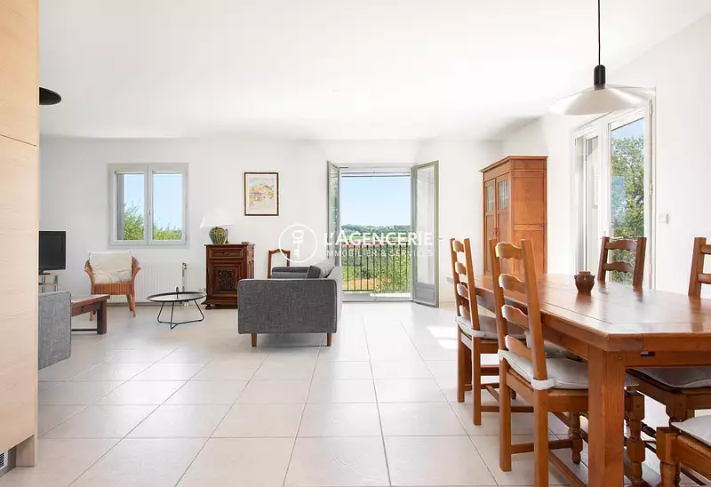 Offrant une surface habitable d'environ 120 m², elle séduit par son agencement fonctionnel et lumineux. La pièce de vie de 55 m², baignée de lumière, réunit un séjour convivial et une cuisine ouverte, aménagée et équipée.