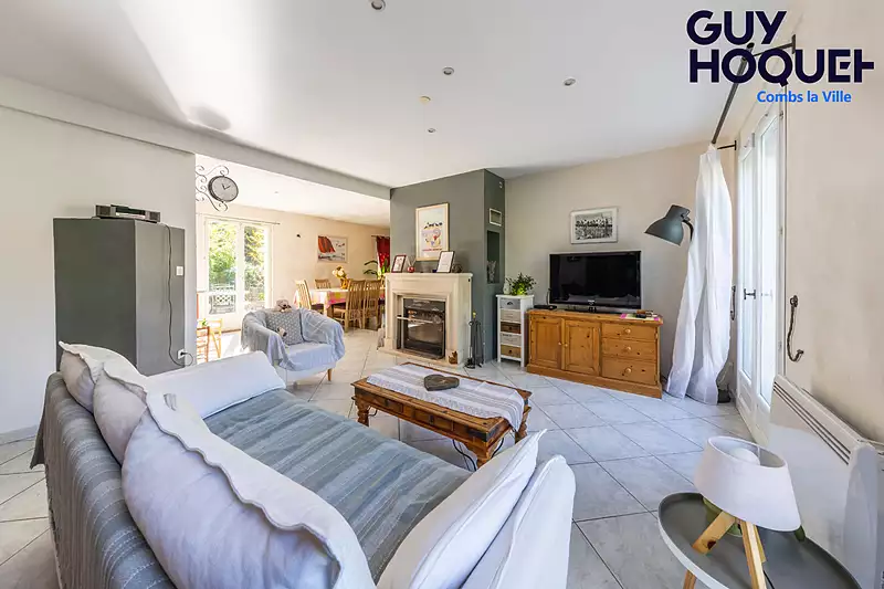 MAISON 7 PIÈCES avec 2 chambres DE PLAIN PIED!!! Guy Hoquet Combs la Ville A vendre : à COMBS LA VILLE (77380), découvrez cette maison de 7 pièces au calme de 120 m² 143 m² au sol) Laissez vous séduire par cette belle maison individuelle au calme et son emplacement en fond d'impasse . Elle inclut un beau séjour/salle à manger traversant de 35 m² avec cheminée, ainsi qu' une cuisine ouverte qui optimise la luminosité pour une surface de 45 m2 au totale sur la pièce de vie. Le rez de chaussée comprends deux chambres ainsi qu'une salle d'eau avec fenêtre et WC indépendant. Le premier étage est composé, quant à lui, de trois chambres dont deux avec placards, ainsi qu'un grand dégagement pouvant servir de bureau et d'une salle de bains avec WC. La maison est également équipée d'un adoucisseur d'eau . Pour profiter des beaux jours la maison dispose d'un terrain de plus de 560 m2 . Concernant les véhicules, cette maison possède un garage et deux places de stationnement a l'intérieur de la propriété. La maison se trouve dans un quartier calme. Plusieurs écoles (maternelle, élémentaire, primaire et collège) sont implantées à moins de 10 minutes en voiture. Côté transports, il y a la gare Lalbenque-Fontanes dans un rayon de 10 km. On trouve de nombreux restaurants et un bureau de poste à proximité du logement. Votre agence vous invite à découvrir toutes les originalités de cette maison en vente en prenant rendez-vous avec l'un de nos conseillers immobilier. Contactez Marilyn VOGT de l'agence Guy Hoquet a Combs la Ville. Agent commercial RSAC Melun sous le numéro n°510181803