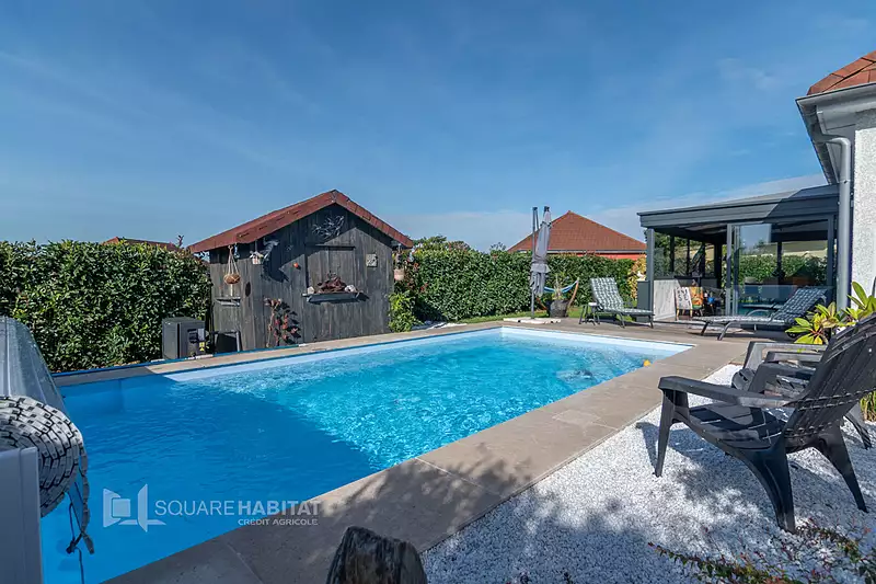 Vous serez serez séduit par cette jolie maison de 2015 de plein pied, située dans un village à 10 min de Lons-le-Saunier et 8min accès autoroute. Au calme et sans vis à vis, cette propriété allie modernité, confort et luminosité. Elle se compose de manière suivante: Une grande pièce de vie avec cuisine ouverte entièrement aménagée et équipée d'environ 35m², une véranda isolé et climatisé, un cellier, une salle d'eau avec WC, trois chambres dont une suite parentale d'environ 17m² , un garage. Le tout sur une parcelle arboré et entièrement clos de 800m². Une piscine au sel, exposée plein SUD est un plus pour bénéficier pleinement de l'extérieur! Etat impeccable aucun travaux à prévoir. Chauffage performant, faible consommation énergétique. Proche commodités, écoles, transport, épicerie? Un bien rare sur le secteur, idéal pour une famille ou résidence secondaire. A visiter sans tarder!