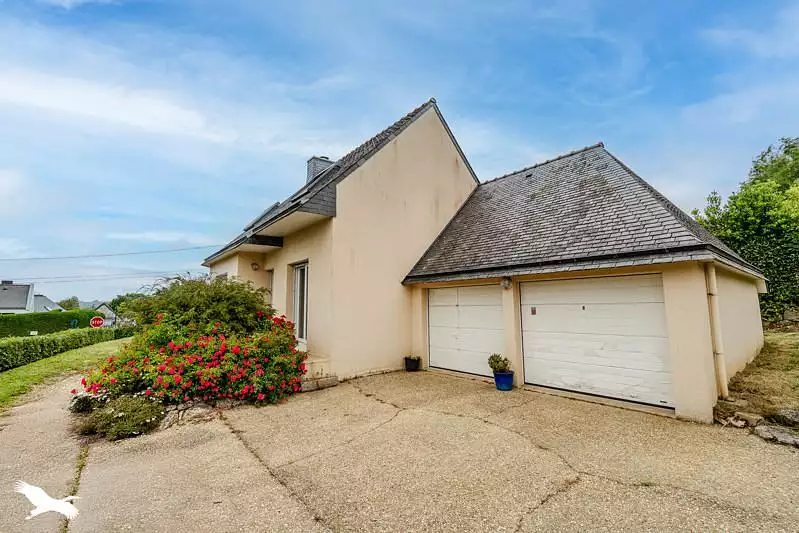 Située entre le bourg et la plage du Portzic, venez découvrir cette maison qui vous offre une vie de plain-pied : pièce de vie lumineuse avec cheminée insert, cuisine aménagée équipée, une chambre. A'étage : 3 chambres. Garage double et terrain clôt de 593m². Proposition d'aménagement virtuel non contractuelle en dernière photo.