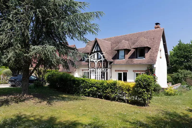 ANNEE HOINVILLE IMMOBILIER vous propose sur les hauteurs de DEAUVILLE dans un quartier calme et résidentiel une grande maison confortable d'une surface habitable de 120m² (surface au sol 158m² + sous-sol de 61m²) sur un terrain clos de 716m².
