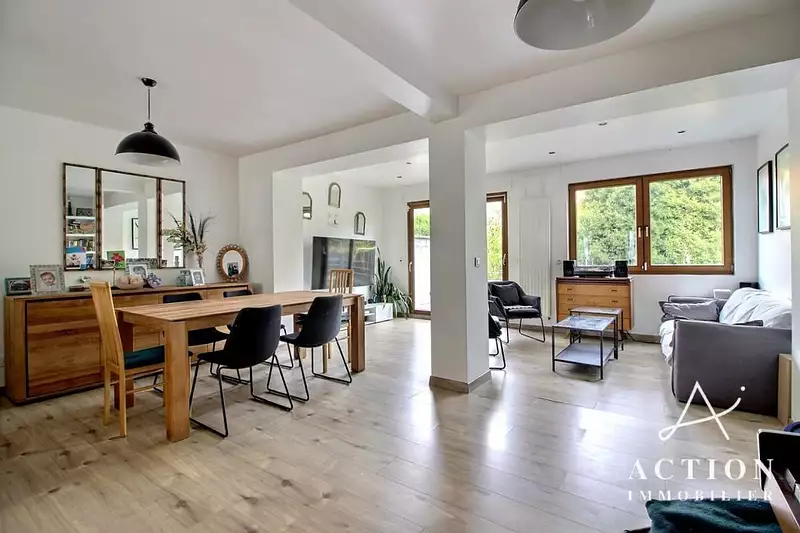ACTION IMMOBILIER a le plaisir de vous proposer en EXCLUSIVITÉ cette très belle maison de 120 m² habitables avec 2 garages et sous-sol semi-enterré complet dans un quartier familial.