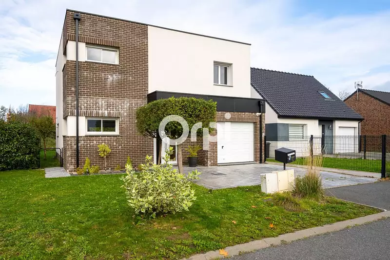 En lotissement, superbe maison de style cubique offrant hall d'entrée (avec rangements), grande pièce de vie lumineuse avec cuisine meublée et équipée, cellier et garage.