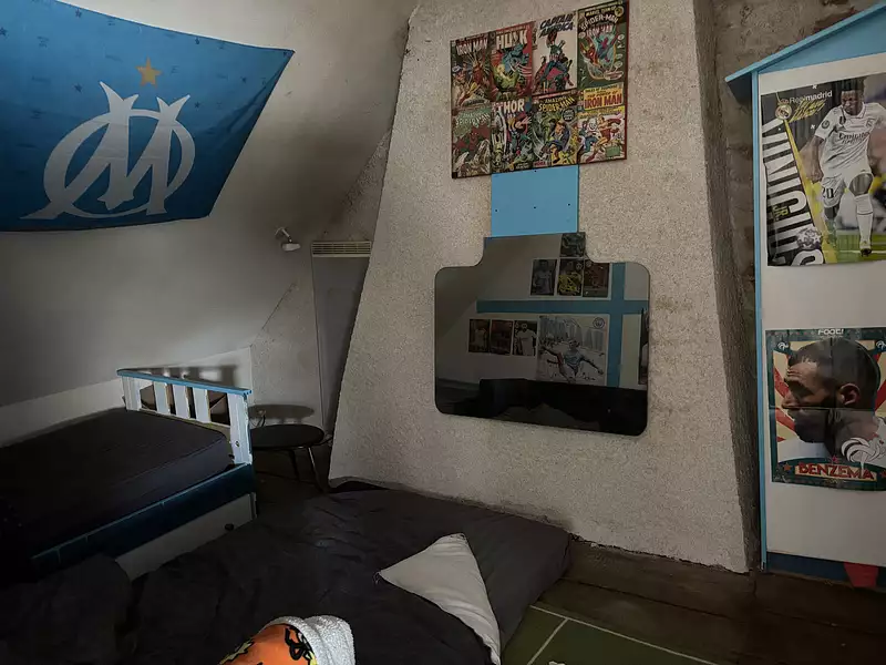 Sur la droite, un passage ouvert avec quelques marches mène à une pièce spacieuse, actuellement utilisée comme salle de jeux, mais qui peut parfaitement servir de chambre supplémentaire.