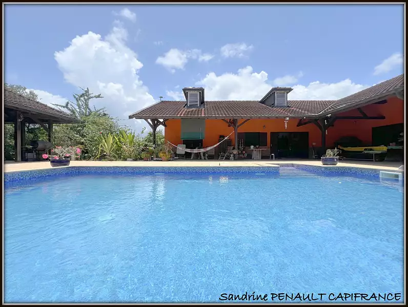 Vous serez charmé par son plan d'eau et son joli carbet sur pilotis, son magnifique terrain avec ses arbres exotiques et fruitiers offrant un cadre de vie exceptionnel.