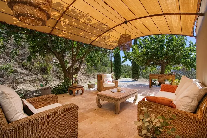 Belle terrasse ombragée avec tonnelle pour les soirées d'été.