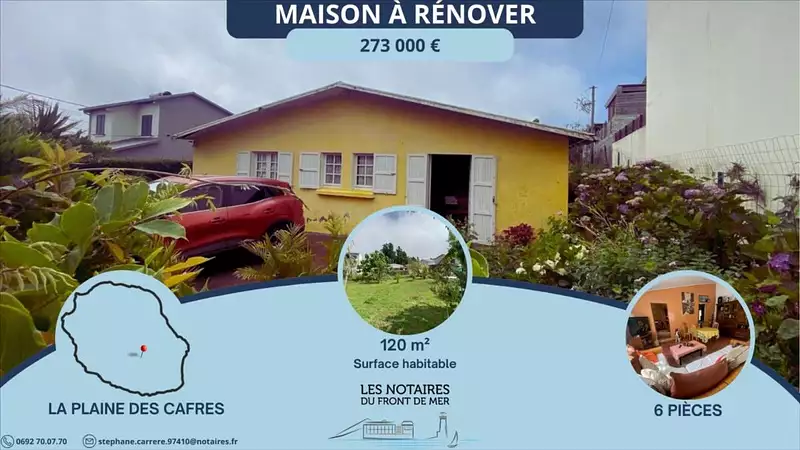 Située dans un quartier calme et paisible, cette maison à rénover est édifiée sur une parcelle généreuse de 978 m². Elle offre un potentiel non négligeable pour ceux qui souhaitent créer leur espace de vie idéal ou un exploitation en location saisonnière .Détails de la maison: séjour spacieux, cuisine, trois chambres une salle de bain, un cellier , un bureau , un espace de rangement.Ne manquez pas cette opportunité, pour plus de renseignements contactez Stéphane CARRERE au 0692 700 770 PRIX: 260 000,00EUR ce non inclus les honoraires de négociation à charge de l'ACQUEREUR d'un montant de 13 000,00€ , soit 4.5% du prix de vente. Le jardin arboré comprend une cuisine traditionnel au feu de bois et un local de bricolage(à rénover) numéro de mandat : 208809; type de bien : Maison; nombre de chambres : 3; détails des pièces : Séjour 23.44 m², Cuisine 25.81 m², Dégagement 4.87 m², Salle de bains 6.62 m², observation: avec WC - Chambre 9.83 m², Chambre 11.22 m², Chambre 12.96 m², Cellier 11.32 m², Bureau 7.39 m², espace de rangement: 7.32 m²; Commune : LA PLAINE-DES-CAFRES.