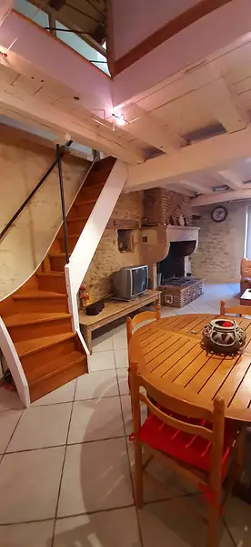 1 pièce à vivre de 50m2 avec 1 cuisine ouverte et équipée donnant sur une dépendance de 80 m2 a rénover permettant une extension de la maison
