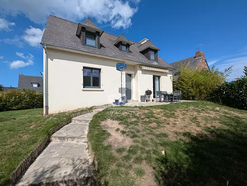 Idéalement située en plein coeur de La Richardais dans une ruelle calme à deux pas des commerces, écoles et services, cette maison entièrement rénovée d'environ 120 m² combine confort moderne, volumes généreux et emplacement recherché. Au rez-de-chaussée, vous découvrirez une pièce de vie lumineuse avec cuisine ouverte, une chambre parentale de 11 m² avec salle d'eau privative, un bureau fonctionnel ainsi qu'un wc. À l'étage, l'espace nuit offre trois chambres confortables, une grande salle de bains. La maison dispose également d'un sous-sol complet comprenant un double garage et de nombreuses possibilités de rangement. À l'extérieur, vous profiterez d'une terrasse exposée sud et d'un jardin clos et arboré.