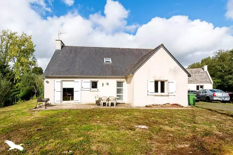 A proximité immédiate de Landivisiau, maison des années 90 comprenant un salon séjour avec cuisine ouverte, 3 chambres, dont 2 au RDC, un bureau, salle d'eau, cellier; l'ensemble sur une belle parcelle d'environ 1280m².