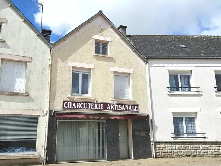 Situé en centre ville du Croisty - Cette maison de 120 m2 (ancien commerce : charcuterie) vous propose, une entrée, une cuisine indépendant aménagée et équipée de 20 m2 , une pièce de pouvant servir de chambre de 9.13m2, un espace de vente pouvant être transformé en salle de 23.40 m2 , une salle de bains - 1er étage : 2 chambres de 16 m2 et 9.24 m2 à redécorer, une salle à manger de 24.64 m2- Étage ; une grande chambre en sous pente de 49.11 m2, Sous -sol carrelé- Petit terrain de 30 m2 - Prix : 98.000 euros