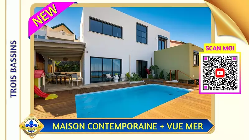 Vous cherchez une MAISON CONTEMPORAINE à TROIS-BASSINS avec vue mer à couper le souffle depuis la piscine ?
