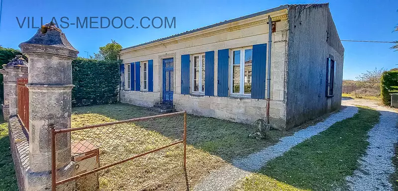 Rare sur le secteur de lesparre, maison en pierres de type échoppe ayant conservé tout son charme d'antan : façade en pierres de taille, portail et grilles en fer forgé, carreaux anciens... Cette maison se compose d'une entrée dégagament desservant un séjour double avec cheminée à foyer ouvert et mezzanine, une cuisine avec vue sur jardin, deux chambres et une salle de bains avec wc séparés. L'ensemble élevé sur une parcelle de terrain de 770 m² avec une dépendance en briquettes d'environ 40 m² à restaurer totalement. Raccordée au réseau de tout à légout. (5.71 % honoraires TTC à la charge de l'acquéreur.)