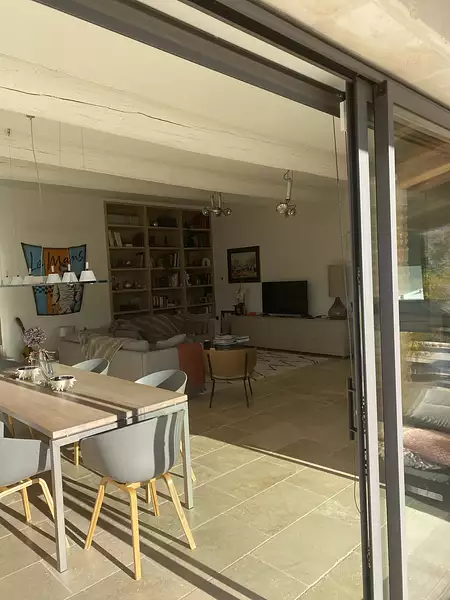 1 spacieux séjour salon de 47 m2 lumineux / terrasse d'environ 100m2 en travertin