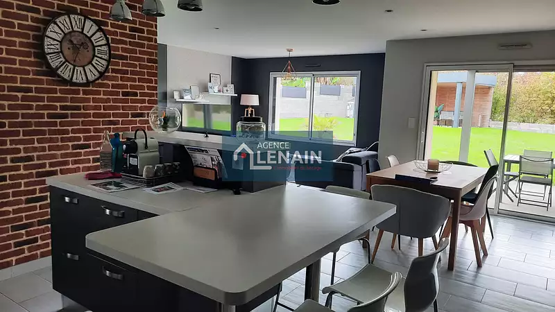 Jolie maison contemporaine de plain pied de 2012 , sur une surface de 120m2 habitable . Ce pavillon avec sa déco soignée comprend, 1 salon séjour, une belle cuisine équipée & aménagée , 3 chambres dont une suite parentale avec son dressing et sa salle d'eau, une autre salle d'eau pour les enfants, WC , lingerie, garage . Un terrain clos de 682m2 et son cabanon moderne , viennent clore le tout ainsi que ces 2 terrasses . Bien à decouvrir idéalement placé pour une famille qui souhaite s'installer de suite , pas de travaux à prévoir.
