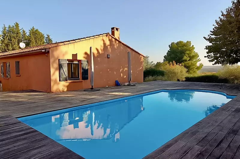À l’extérieur, vous profiterez d’un superbe espace détente avec une piscine chauffée de 10x4 m, au sel, dotée d’un volet électrique et d’une gestion automatisée par électrolyse. Le tout est sublimé par une terrasse en bois qui invite à la détente.