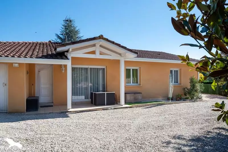 Cette maison familiale se compose d'une entrée sur une grande pièce de vie de 40m², d'une cuisine équipée indépendante, d'un garage cellier, 4 chambres, une salle de bain et une salle d'eau. Dans un quartier résidentiel et en fond d'impasse cette maison contemporaine de plain pieds bénéficie également d'une belle luminosité.