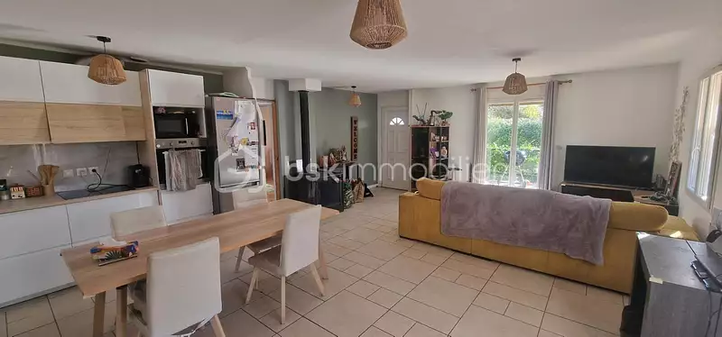 Une pièce de vie lumineuse avec insert à bois et climatisation réversible,