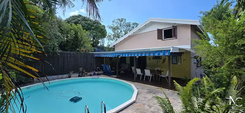 Située dans le lotissement privé de Natéré, cette villa F3 avec mezzanine vous séduira par son charme style 'chalet'. Construite dans les années 80, elle offre un séjour avec des plafonds rampants, une cuisine équipée, 2 chambres climatisées avec placard, une salle d'eau, un wc indépendant et une grande mezzanine d'environ 40 m².