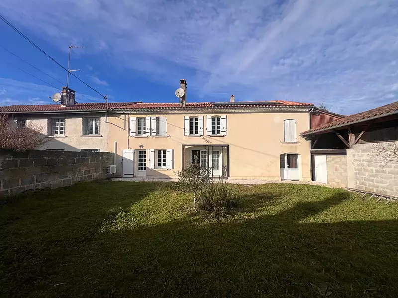 Maison avec gros potentiel situé à 5 minutes de La Roche Chalais et 10 minutes des Eglisiottes sur un hectare de yerrain avec une partie constructible. Elle est composé au rez de chaussée d'une grande pièce de vie avec cheminée, une cuisine séparée, une salle de bain, wc, une grande arrière cuisine et un garage attenant A l'étage, quatre grandes chambres et grenier aménageable. La maison est équipée de panneaux solaires photovoltaïques et d'une pompe à chaleur. (4.67 % honoraires TTC à la charge de l'acquéreur.)