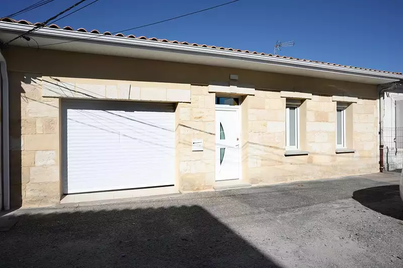 Façade en pierre de taille, grand garage motorisé permettant de stationner et sécuriser un véhicule, et vaste terrain de 537 m² (à confirmer) offrant un excellent potentiel d'aménagement extérieur.