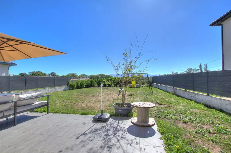 Très bien située à Péron, dans un secteur résidentiel calme et recherché, belle maison individuelle moderne et lumineuse de 5 pièces, d'une surface habitable de 120 m², implantée sur une parcelle de 553 m² offrant une vue dégagée sur les montagnes et les champs environnants.