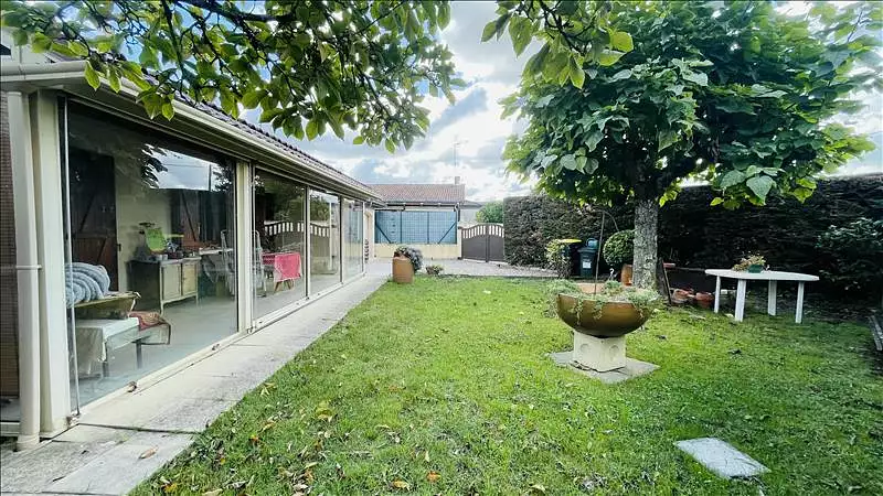 Situé dans un quartier résidentiel calme de Pineuilh, à proximité des commerces, de écoles et de la gare, cette maison de plain-pied de 120 m² se compose d'un séjour de 30 m², d'une salle manger, d'une cuisine séparée, de 3 chambres, salle d'eau et WC. Cellier et buanderie. Garage attenant. Terrain clos et arboré de 500 m² environ
