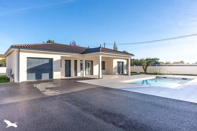 Cette maison contemporaine de 2023 se compose d'une vaste pièce de vie lumineuse avec cuisine ouverte de plus de 50m2, trois chambres dont une suitée, une salle de bains et 2 wcs. L'extérieur offre une piscine avec terrasse creusée attenante et un pool house avec douche et wc. Le jardin d'environ 1000m2 est entièrement clos. Proposition d'aménagement virtuel non contractuelle en dernière photo.