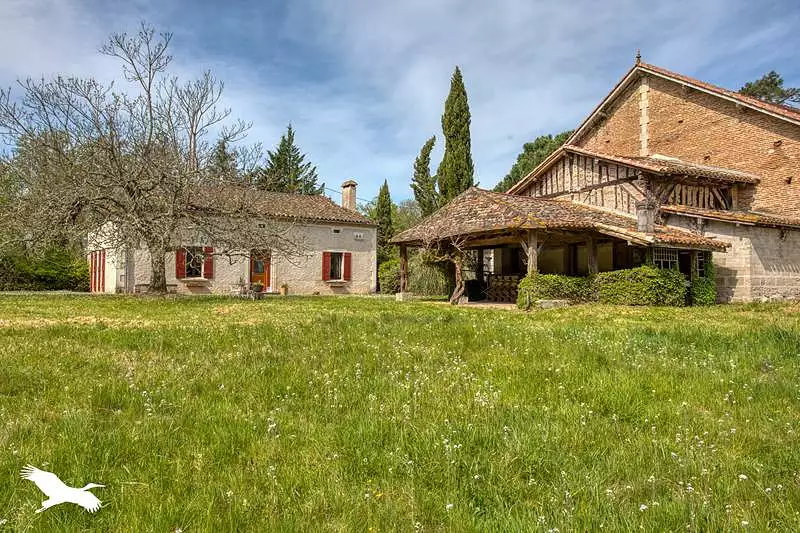 Forêt de la Double, entre Mussidan et Ribérac, propriété comprenant une maison d'habitation de plus de 145m² habitables sur 2 niveaux, chambre, salle d'eau et wc de plain-pied et 4 chambres et salle d'eau à l'étage. Une grande grange offrant divers projets et un terrain de plus de 2 hectares avec mare. Environnement calme.